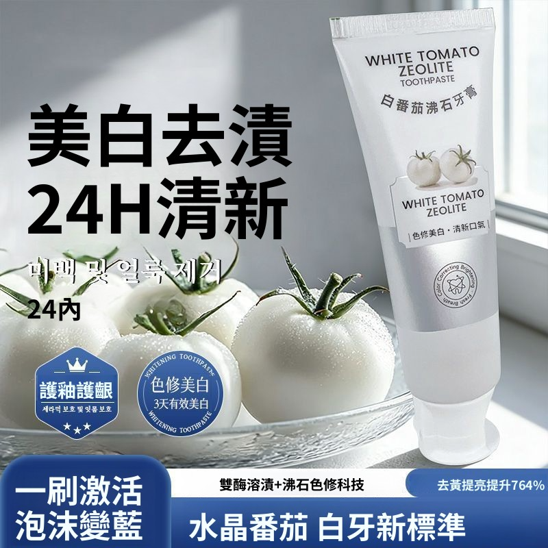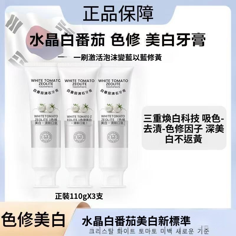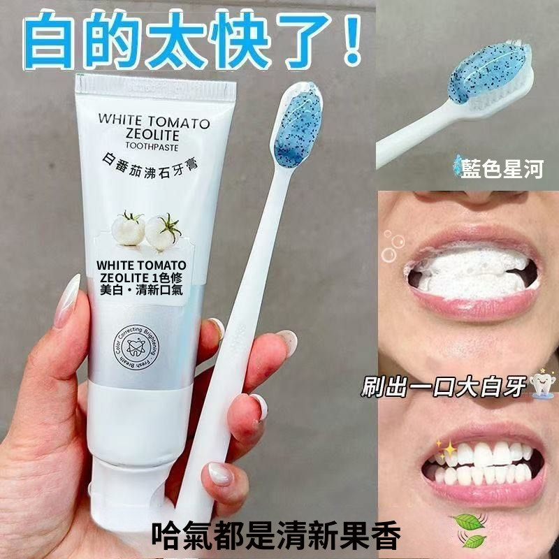 韓國白番茄沸石美白牙膏色修白牙去黃去漬除口臭清新口氣護龈
